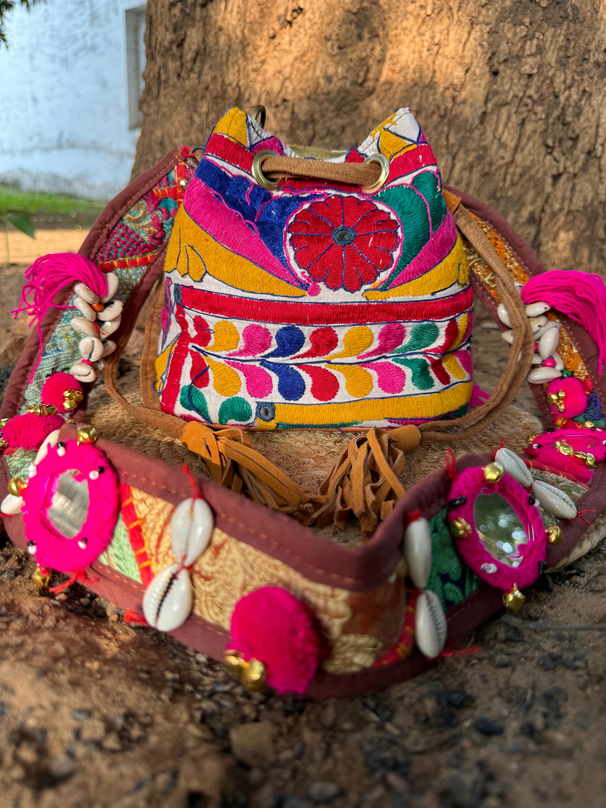 Ethically made with love, this Indian bohemian bag is made with vintage banjara fabric patches, Leather and is the perfect festival bag. With its elegant and understated simplicity, this would be a great companion on music festivals, rock concerts, or any adventure around the globe. You can also make it as your daily go to bag!